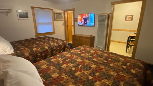 Two Queen beds, 43" Smart TV, Refrigerator, Microwave Oven, Coffee maker. Attached room with double bed available for 25/night